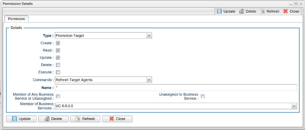 B-09938 | Business Services Security and Visibility for Promotion Targets | In order to allow more granular administration promotion targets can now be assigned to business services and a new user / group permission type for "Promotion Target" has been added to control how users can interact with promotion targets. The existing "ops_promotion_admin" remains to provide global access to the promotion targets.