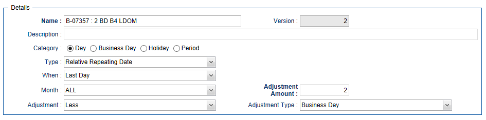 B-07357 | Custom Days (Relative Repeating Date) Add “Last Day” & “Last Business Day” to the When Clause | For Example "Run 2 Business Days before the Last Day of the Month".
