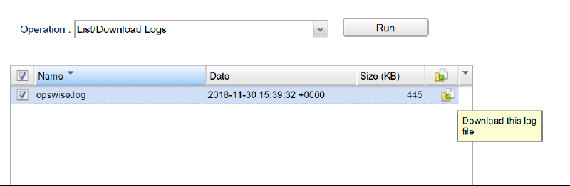 B-10115 | List/Download Opswise log files via the Client GUI | New Server Operation that lists the available "opswise log" files for the current cluster node and allows the user to select one or more logs for download to their local machine for viewing.