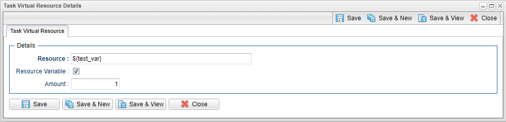 B-04017 | Task Virtual Resource Variable Support | When specifying Task Virtual Resources, you now can use a variable instead of having to select a specific Virtual Resource. If the variable does not resolve to a valid Virtual Resource when the task is launched, the task will go to a Start Failure Status with an appropriate message indicating the error.