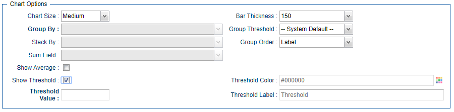 B-11293 | Reports : Bar Charts - Show Threshold Line Option | For Bar Chart report types you can now optionally show a threshold line in the chart. In the Report Definition form under Chart Options, simply check the Show Threshold option, specify the Threshold Integer Value and optionally specify the average line color, and Label.