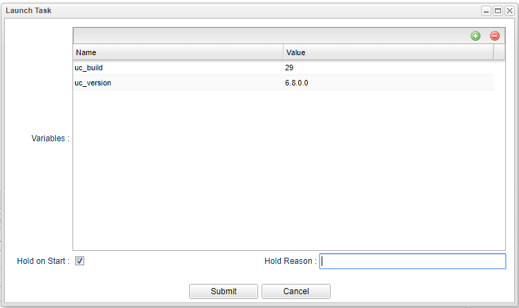 B-10741 | Add Hold Reason to Launch Task with Variable when Hold on Start is enabled | When Launching a Task With Variables and specifying the Hold on Stat option users can now optionally enter the Hold Reason.