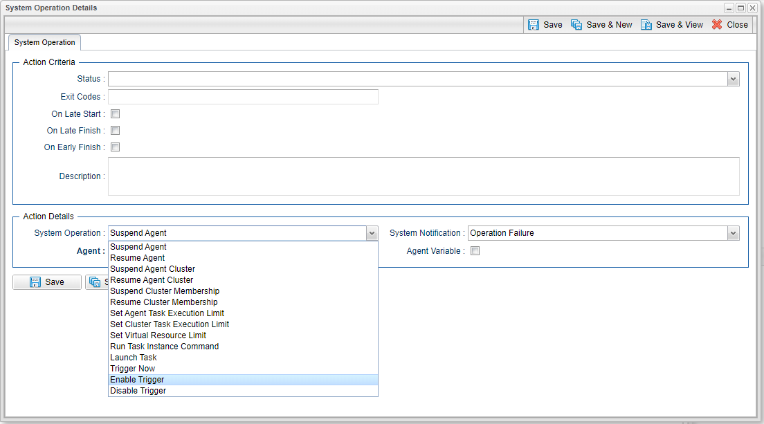B-10688 | Enable & Disable Trigger System Operations Actions | Two new System Operation Actions have been added to allow Triggers to be Enabled and Disabled.