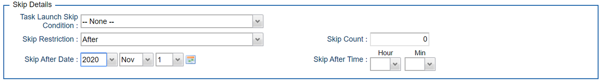 B-09930 | Skip Restrictions for Triggers | UC 6.9.0.0 introduces a new trigger form section Skip Details. This section contains the Task Launch Skip Conditions and Skip Count which were previously located in the Status section and a new Skip Restriction feature.