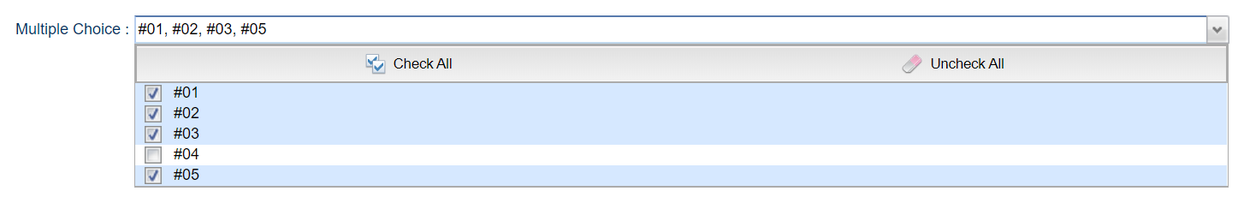 The values selected in the Multiple Choice field are returned to the Universal Template script as a comma separated string. | ||||||||||||||||