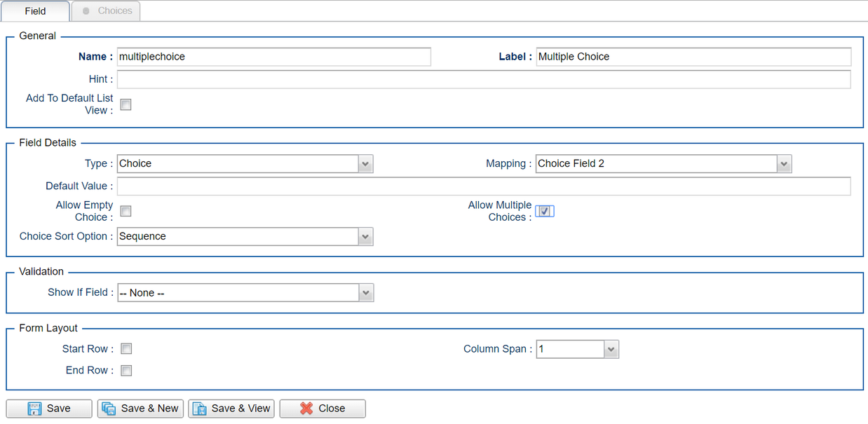 Multiple Choice Field Example: