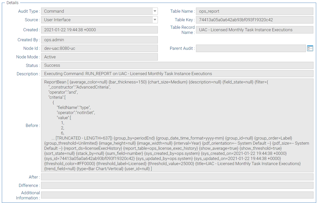 B-11406 | Provide Audit record for Report "Run" command | Audit records are now available for the report “run” command.