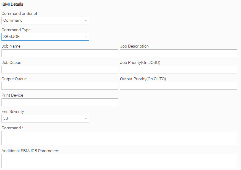 E-02054* | B-20665: IBM i Task: Submit Job (SBMJOB) Command Type B-21179: IBM i Task: End Severity Option | A new Command Type, Submit Job (SBMJOB), has been added to IBM i Tasks.