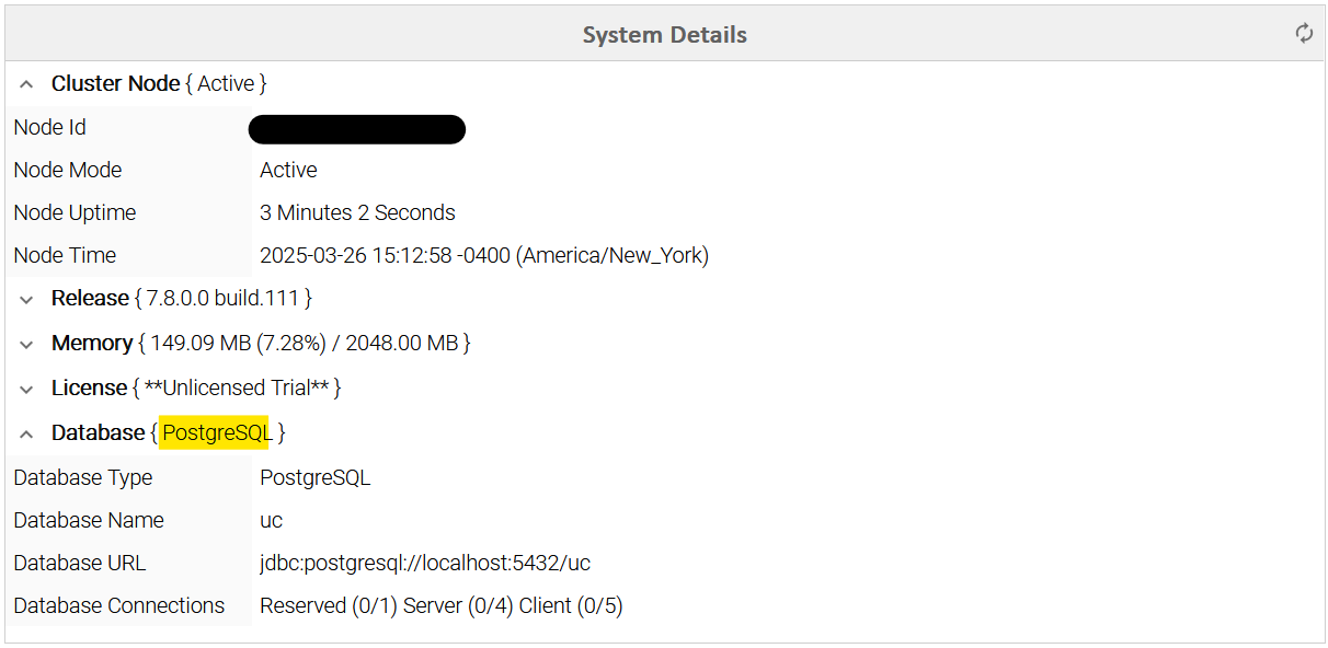 B-02980 | PostgreSQL "Database Type" for Database Connections. | From the Database Connection form, a new PostgreSQL option is available from the Database Type drop-down. When selected, the form will be pre-populated with a template Connection URL and a Driver for PostgreSQL.