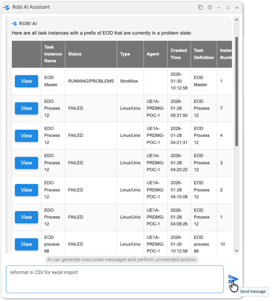 Robi AI knows what "problem state" means, so it finds all task instances that were not successful.