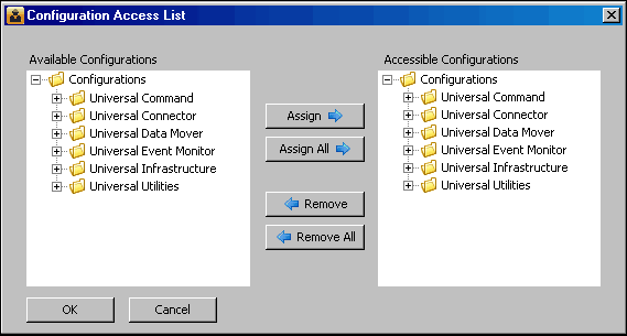 Click the Assign button to add selected Available Configurations to the Accessible Configurations window; click the Remove button to remove selected Accessible Configurations from that window.