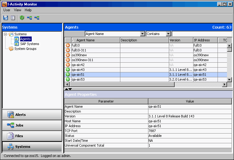Show Universal Agent Jobs: Display Universal Agent jobs for the Agent currently selected in the Data table. (See Jobs Table.) | |