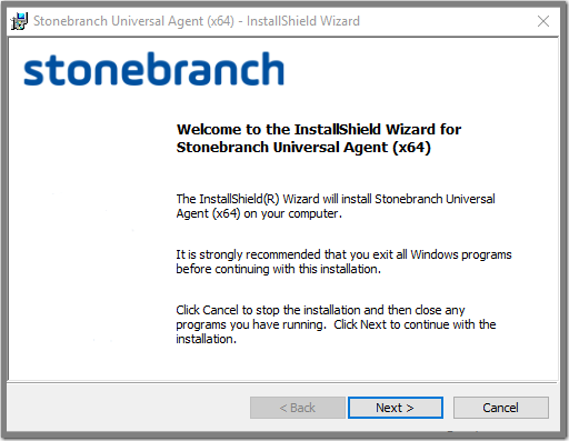 Installing a Universal Agent for Windows System Install via the Windows Installer Graphical Interface