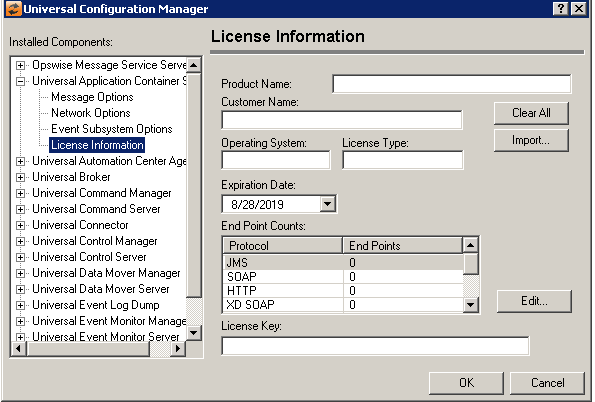 Clear All Button | Select this button to reset the license information fields to their initialized defaults. |