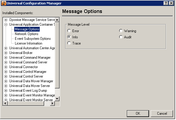 Message Level | Error Warning Info Audit Trace |