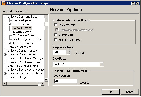 Keep live Interval | This value specifies the frequency with which a keep alive message will be sent to the Universal Command Manager. The manager uses this message to verify that a network connection still exists with the server during periods of network inactivity. |
