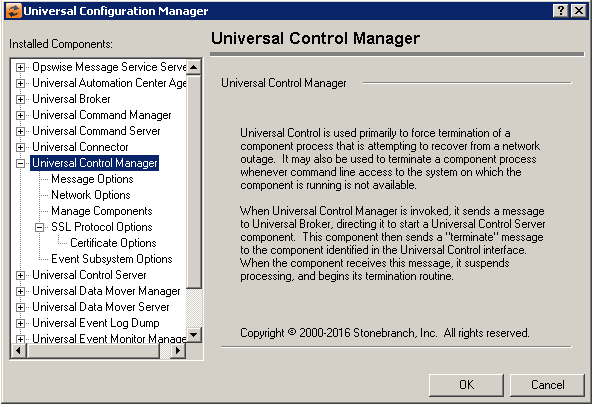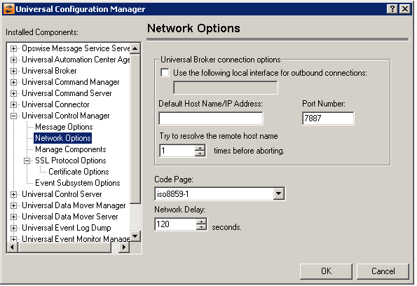 Universal Control Manager: Network Options