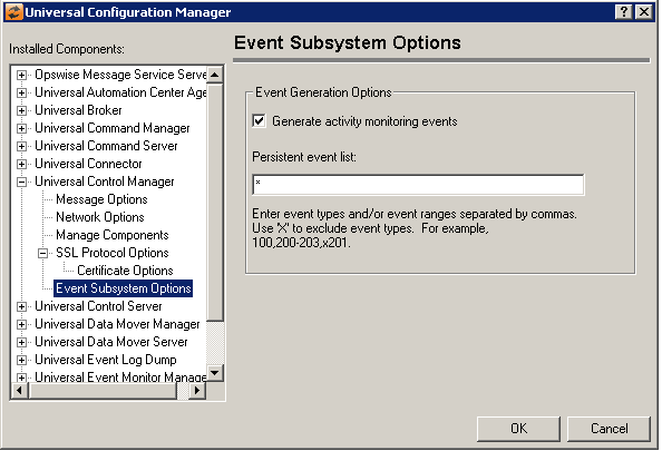 Universal Control Manager: Event Subsystem Options
