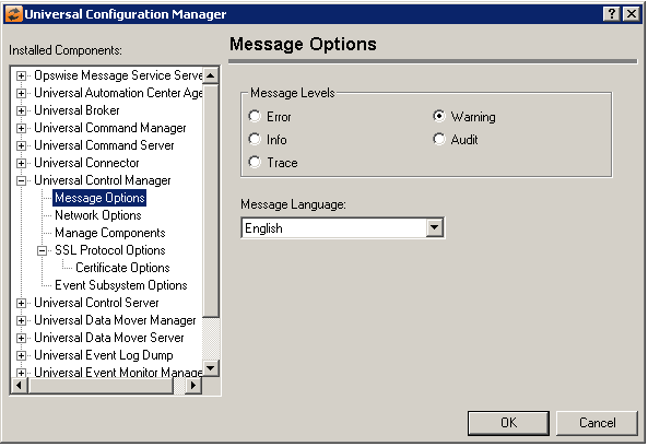 Universal Control Manager: Message Options