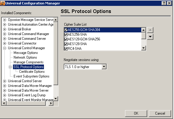 Universal Control Manager: SSL/TLS Protocol Options