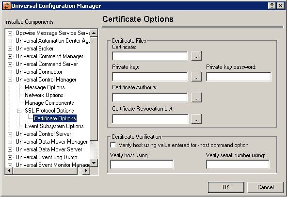 Universal Control Manager: SSL/TLS Protocol Options - Certificate Options