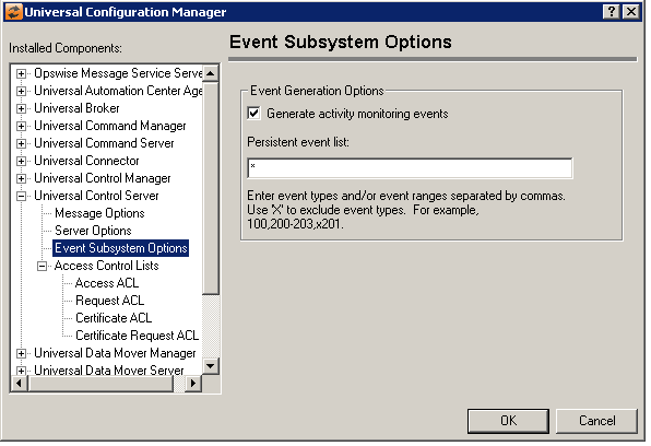 Universal Control Server: Event Subsystem Options