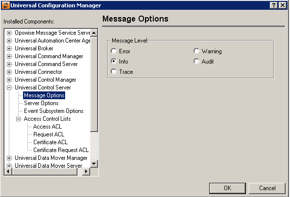 Message Level | Error Warning Info Audit Trace |