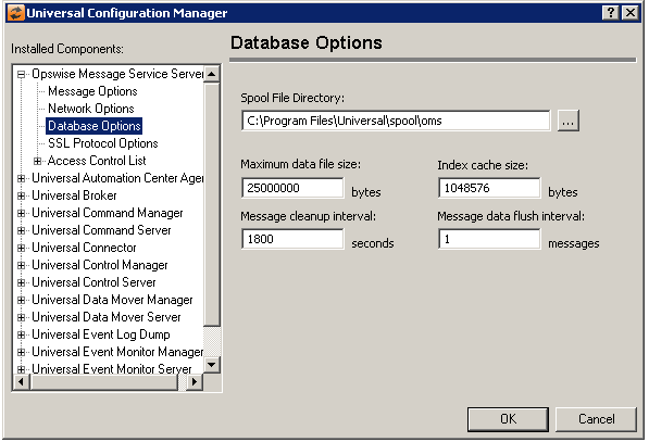 Maximum data file size | The maximum size, in bytes, of the message data file. Once the maximum size is reached, OMS Server creates a new data file. |