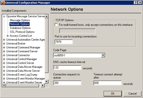 Connection Requests to queue | Specifies the number of connection requests that will be queued by OMS Server. When the number of pending connection requests reaches this value, additional connection requests will be denied and a "connection refused" error will be issued. |