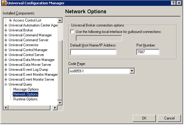 Universal Broker Connection Options | Outbound IP Option Default Host Name/IP Address Port Number |