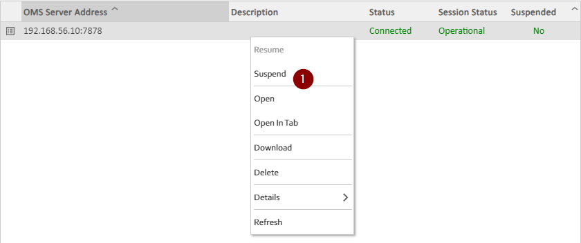 - Suspend the OMS server running on the Solaris Intel machine being upgraded. This may not be necessary if the OMS server is on a different system.