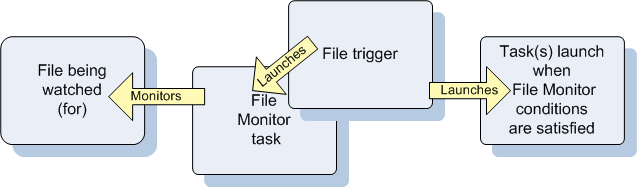 In this scenario, the Agent File Monitor task launches when its associated Agent File Monitor trigger is enabled.