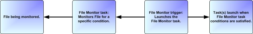 - An Agent File Monitor task, which watches for the creation, deletion, change, existence, or non-existence of a file.