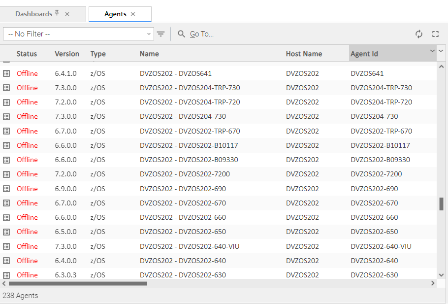 From the Agents & Connections navigation pane, select Agents > All Agents or Agents > <type of agent>. An Agents list displays: