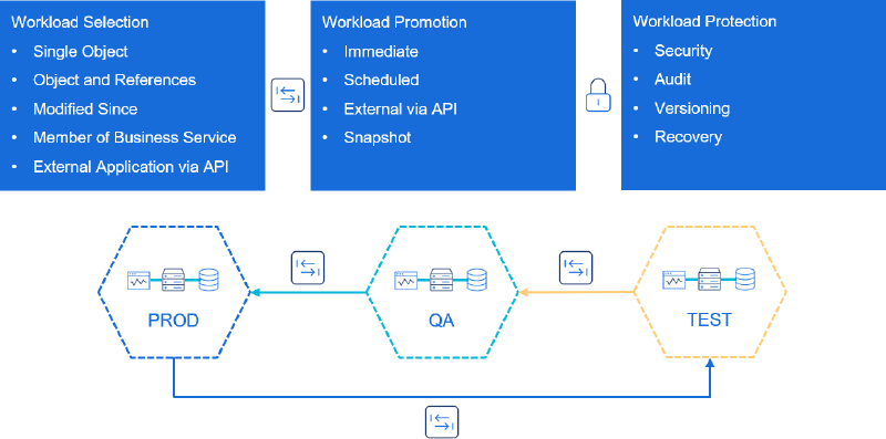 This allows you to develop, modify, and test changes in a non-production environment and migrate them to your production environment in a fully secure and audited manner (with back-out capabilities, if required).