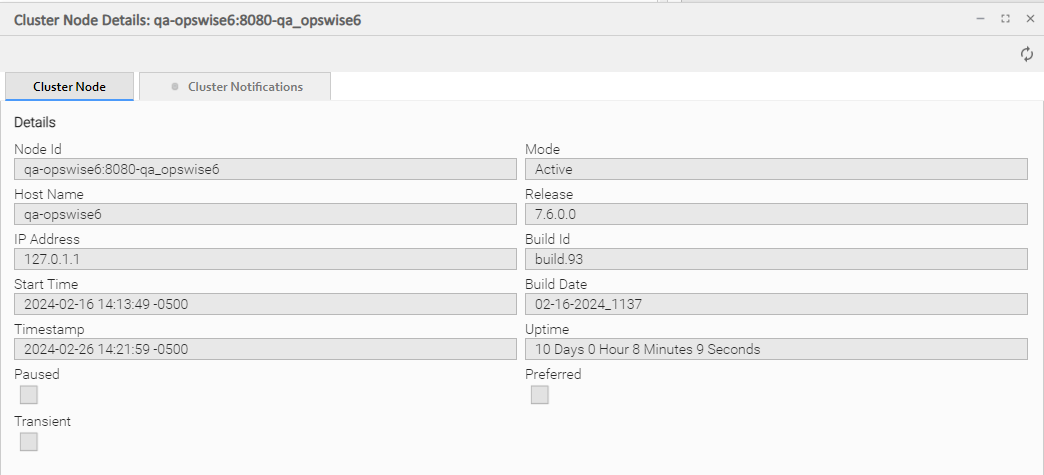 For information on how to access additional details - such as Metadata and complete database Details - for Cluster Nodes (or any type of record), see Records.