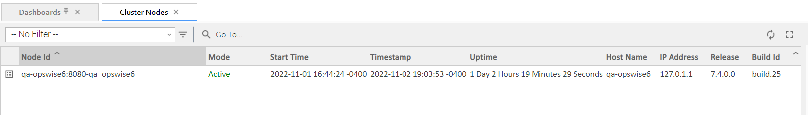 Step 1 | From the Agents & Connections navigation pane, select System > Cluster Nodes. The Cluster Nodes list displays: