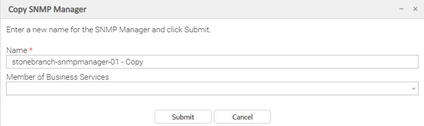 However, you also can use the Copy action on the SNMP Manager Action menu or the Copy button in the SNMP Manager Details.
