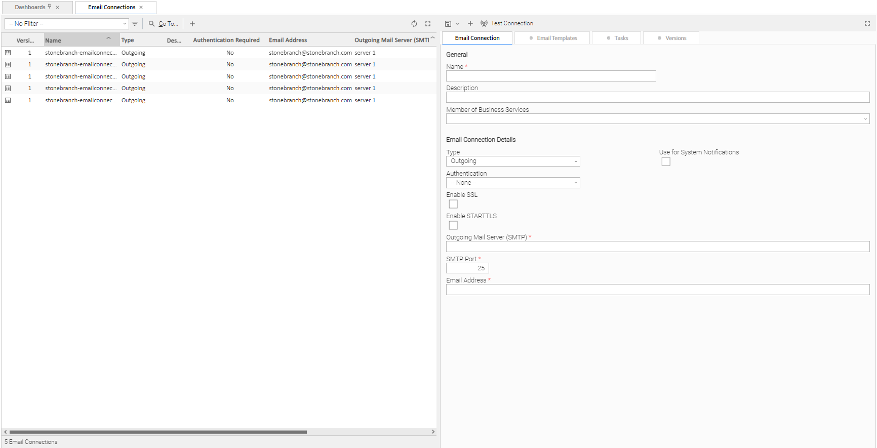 Email connections provide all of the email server information necessary for Universal Controller to send emails.