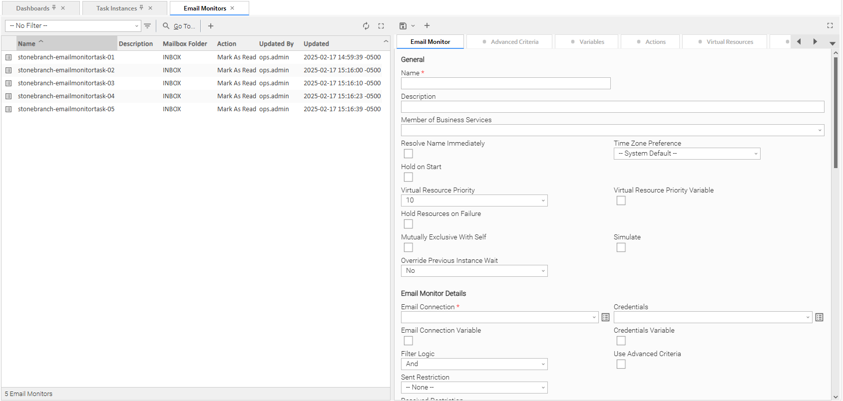 Email Monitor Task Details