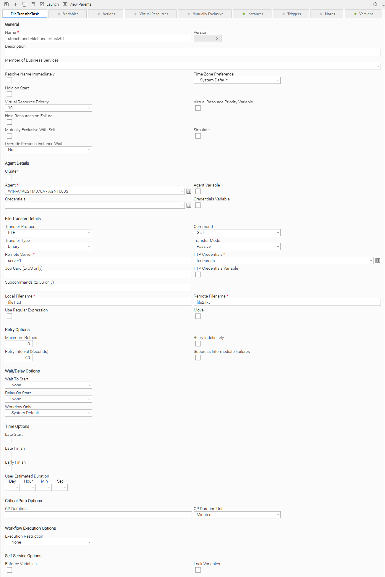 The following FTP/SFTP/FTPS/FTPES File Transfer Task Details is for an existing FTP/SFTP/FTPS/FTPES File Transfer task.