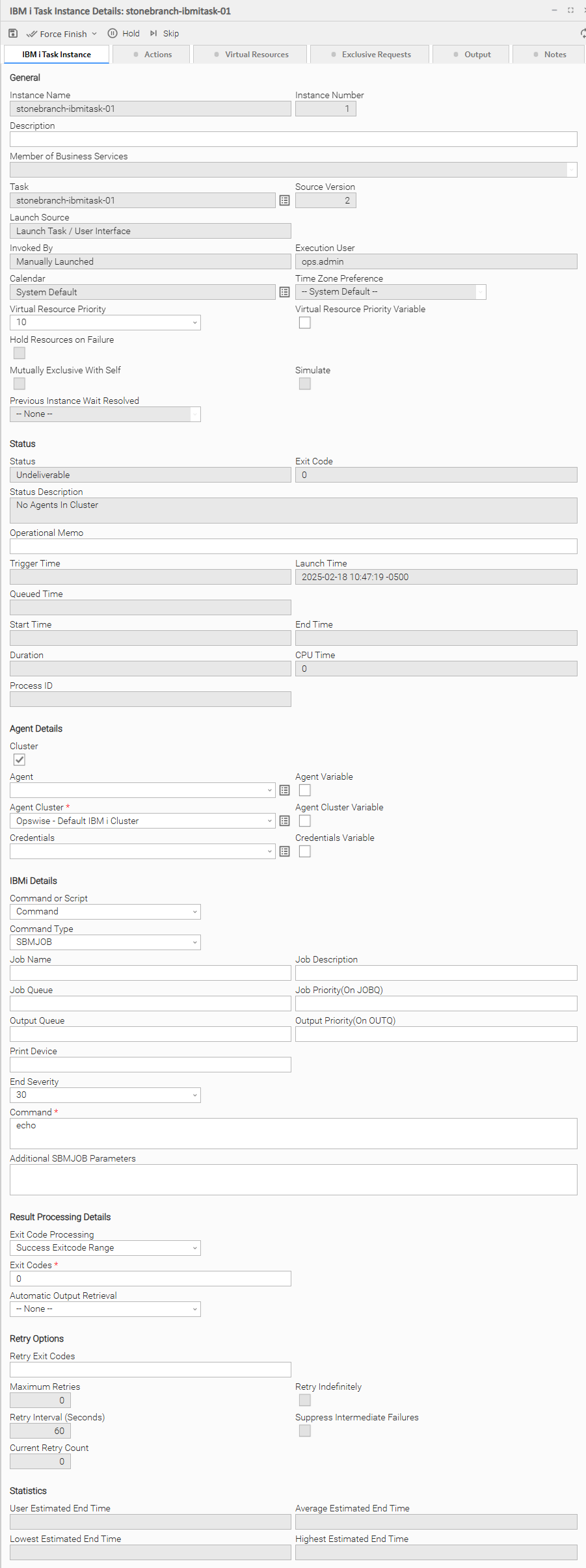 The following IBM i Task Details is for an existing IBM i task.