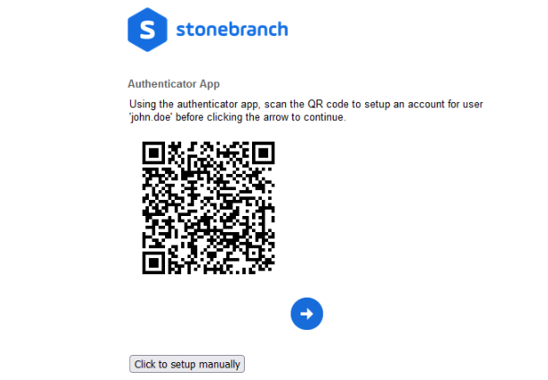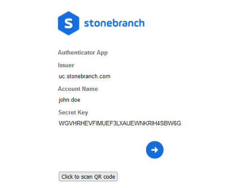 The Issuer, which the authenticator app uses for identifying the account in the app, will appear as [System Identifier@]uc.stonebranch.com.