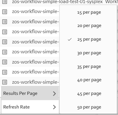 Hover your cursor Results Per Page on the Settings drop-down list to select the number of task instances to be displayed on a page (default is 25).