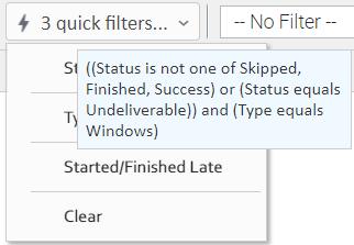 You must select each Quick Filter individually; you cannot use Ctrl-click to select multiple Quick Filters. The Quick Filter button provides a count of how many Quick Filters have been applied to the list. For example, the following Quick Filter button shows that three separate quick filters have been applied.