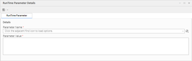 Click the refresh picker icon next to the Parameter Name field to select options for the RunTime Parameter.