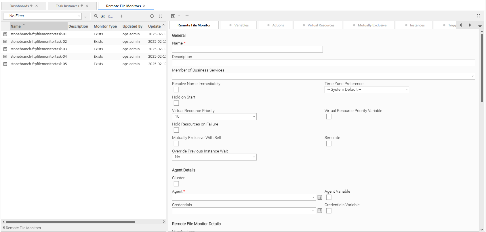 - Instances tab on the Remote File Monitor Task Details for that task