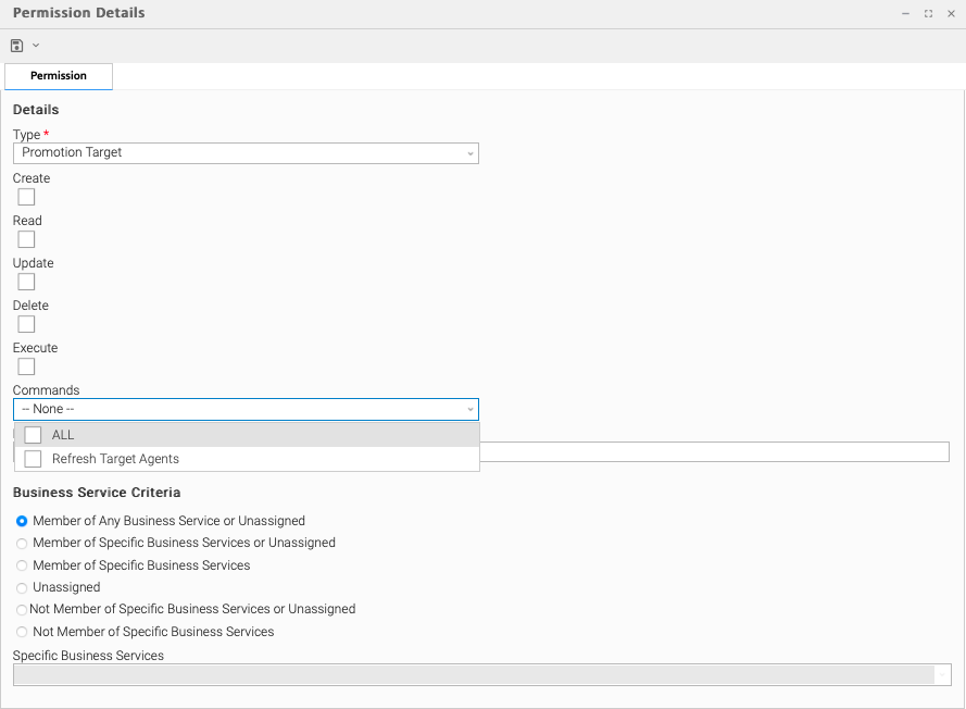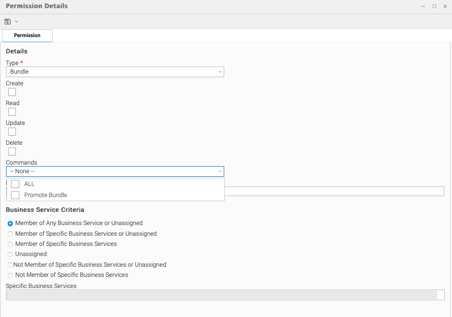 By default, the ops_promotion_admin role also grants Read permission for any type of definition that can be added to a Bundle, given the expectation that a promotion administrator would review the content of a Bundle before promoting it. To change this default behaviour, see the Promotion Read Permission Required Universal Controller property.
