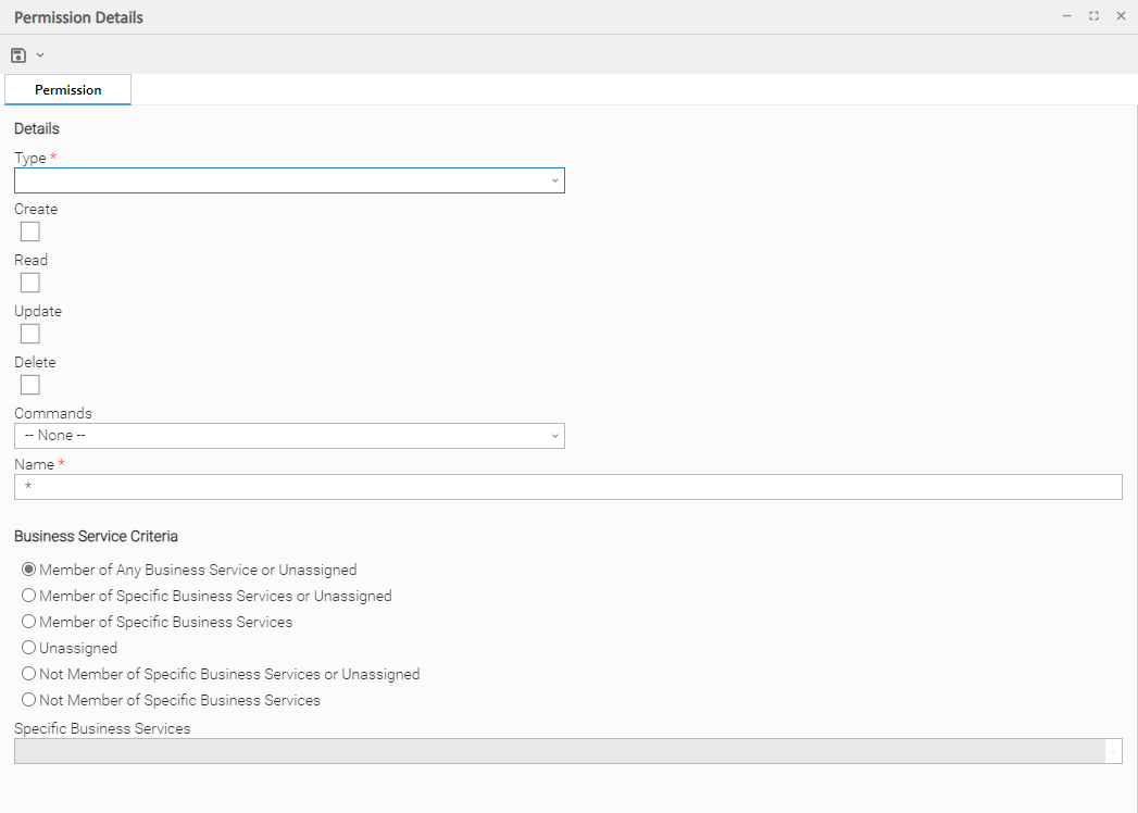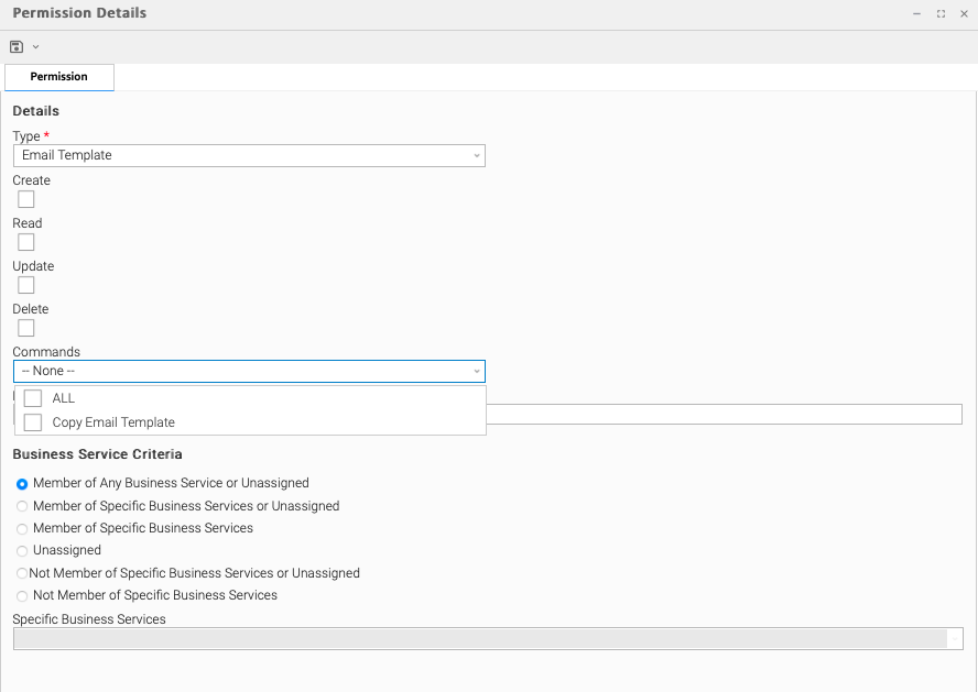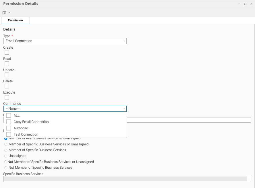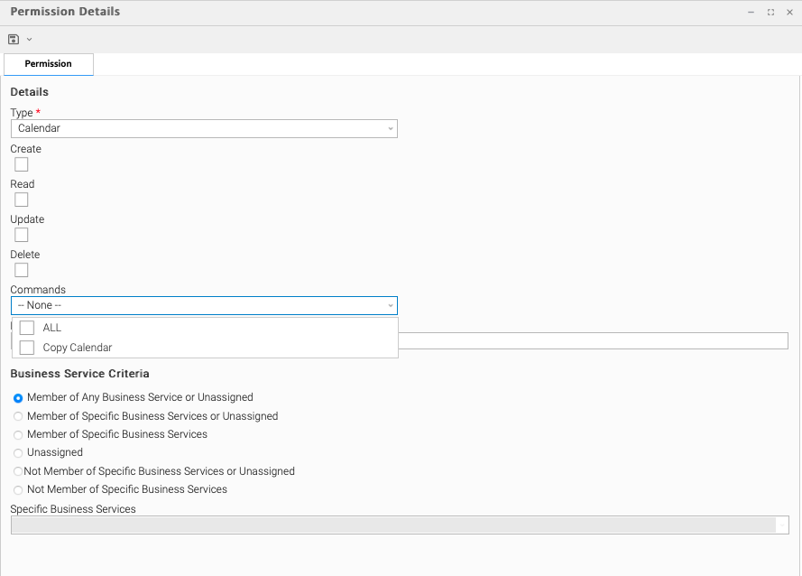 The permission Member of Any Business Service or Unassigned, Unassigned to Business Service, and Member of Business Services applies to the published Universal Event Member of Business Services.