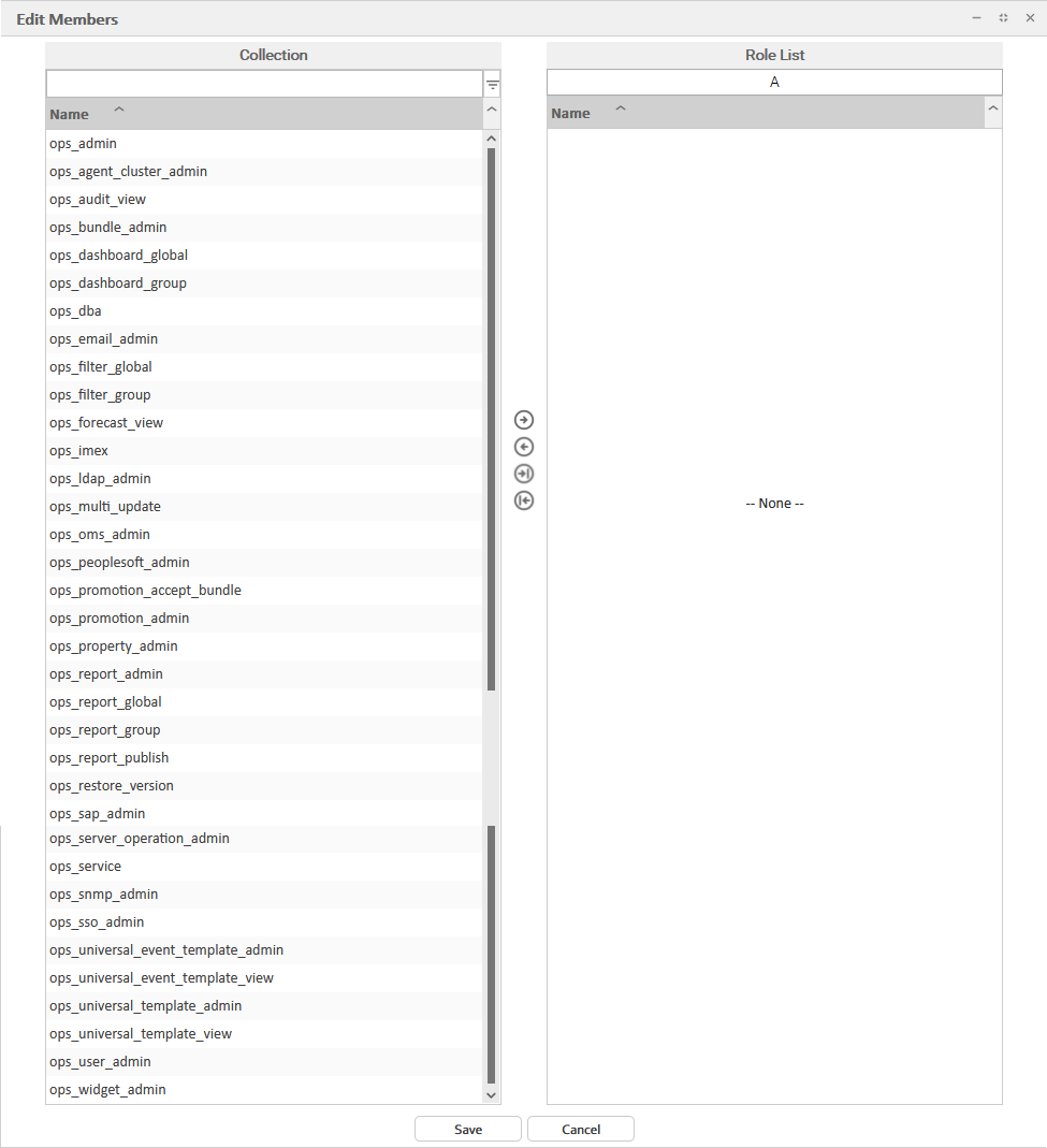 • The Collection window displays all Roles that have not been assigned to this User / Group.